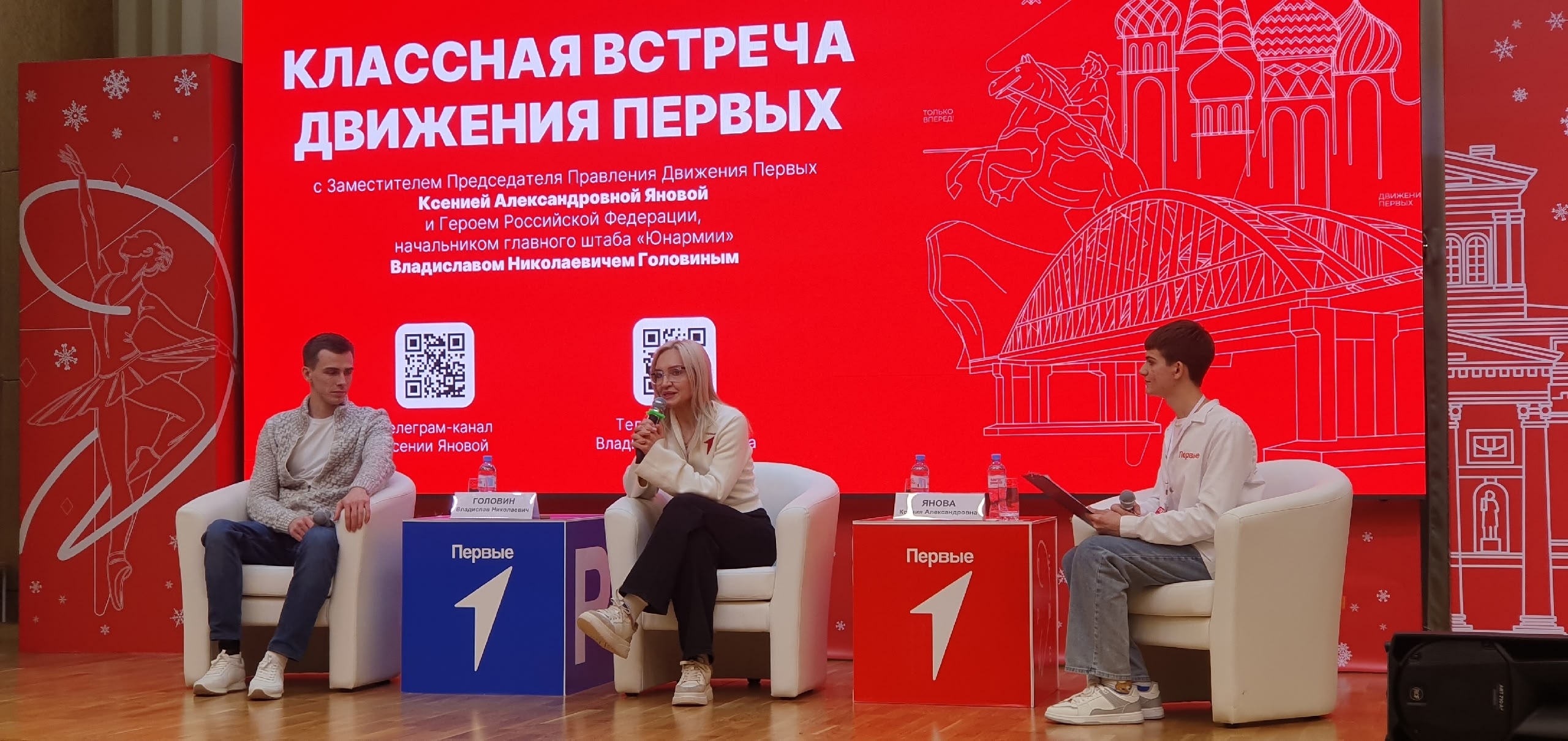 Состоялась «Классная встреча» с легендарными гостями: Героем России, заместителем председателя правления «Движения Первых», начальником главного штаба «ЮНАРМИИ» Владиславом Николаевичем Головиным и заместителем председателя правления «Движения Первых» Ксенией Александровной Яновой. Это был уникальный диалог о ценностях, возможностях и будущем молодого поколения!