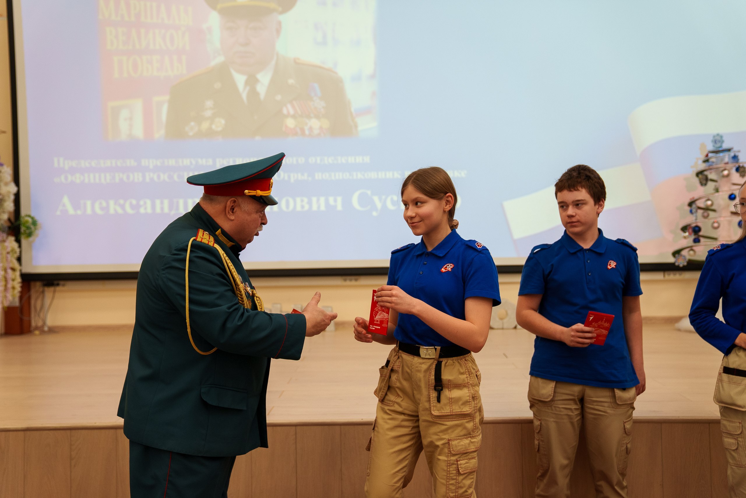 Почётная миссия вручения была доверена человеку, для которого служение Родине — смысл жизни. Обложки ребятам вручил Председатель президиума регионального отделения «ОФИЦЕРОВ РОССИИ» ХМАО – Югры, подполковник в отставке Александр Сусидко.