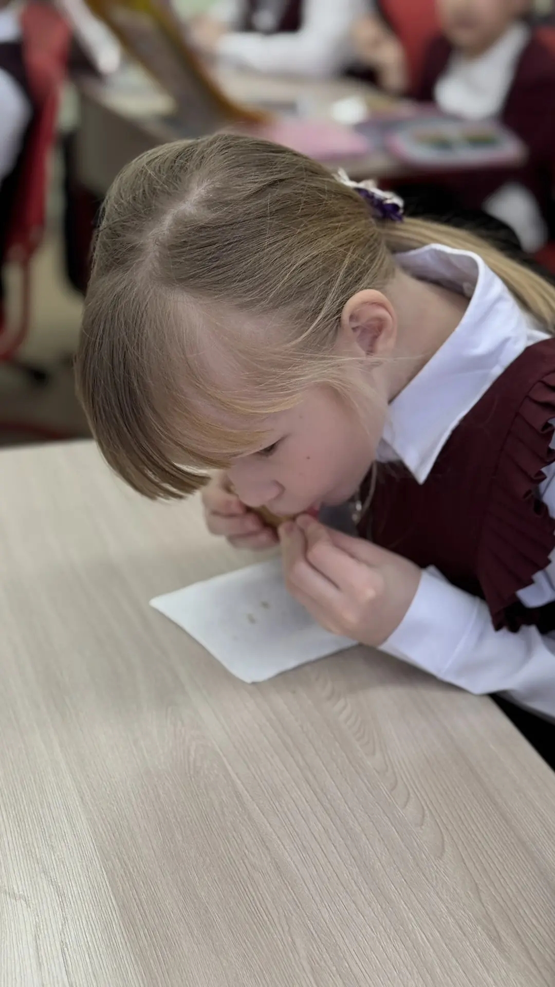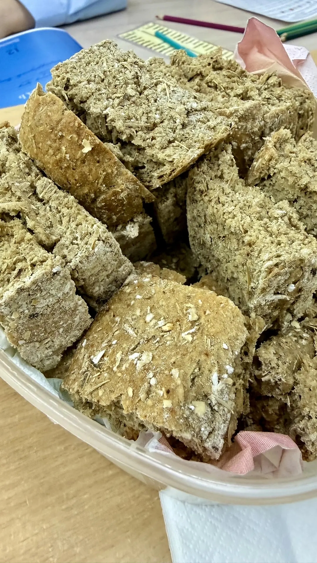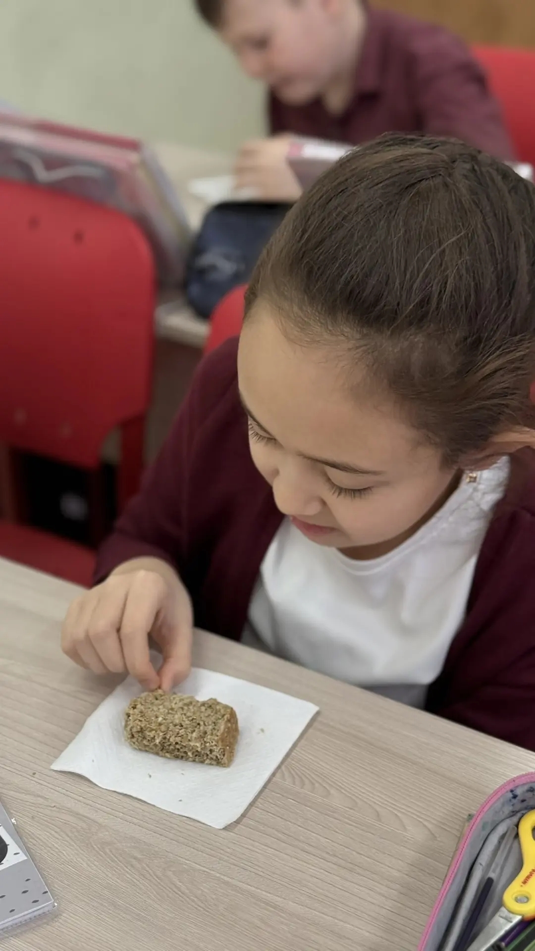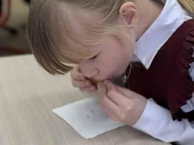 Чтобы прикоснуться к истории не только умом, но и сердцем, ученики совместно с родителями решили воссоздать рецепт блокадного хлеба по сохранившимся документам. За это ответственное дело взялась Елена Александровна Ситникова, мама одной из наших учениц. Она испекла для ребят тот самый хлеб — тёмный, плотный, без привычного аппетитного аромата.