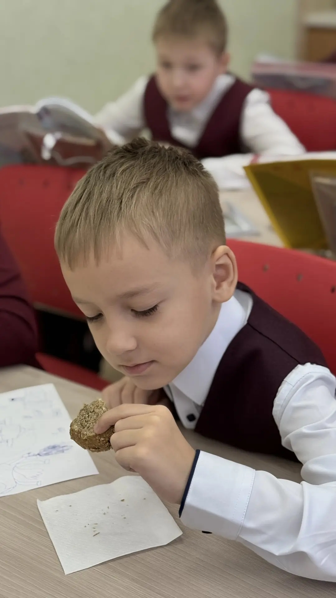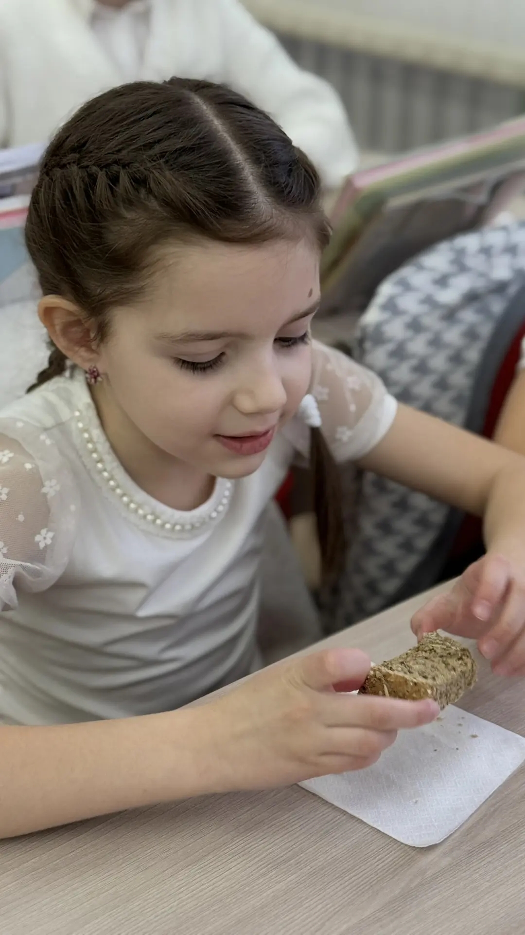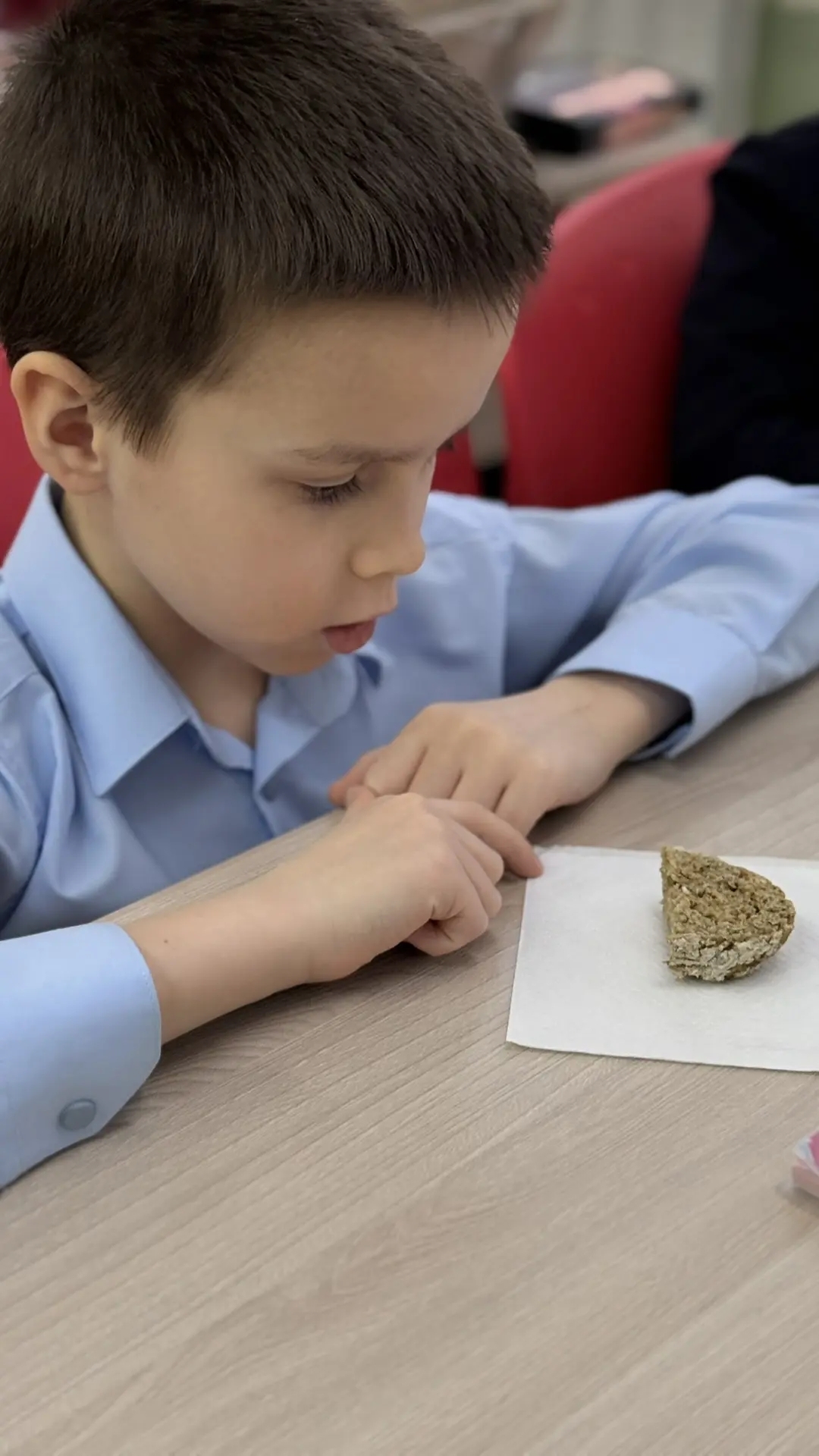 И вот он лежал перед ребятами — скромный кусочек в 125 грамм, суточная норма для жителя осаждённого города. Дети сначала смотрели на него с сомнением. Но решение попробовать пришло само собой. Каждый взял свой кусочек. И в тишине, с серьезными лицами, они его пробовали.