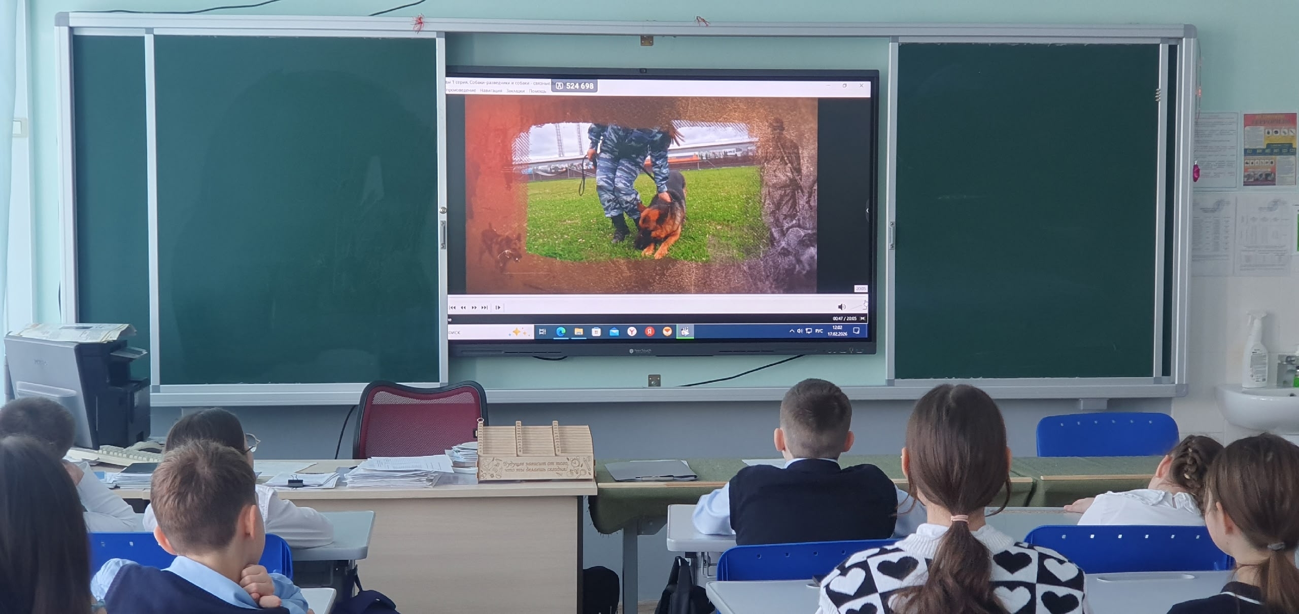 В преддверии Дня защитника Отечества тема урока была особенной — «Собаки Победы». Ребята узнали, что у собак тоже есть самые настоящие профессии. Четвероногие герои наравне с людьми несли службу в годы войны, работая спасателями, связистами, разведчиками и санитарами.