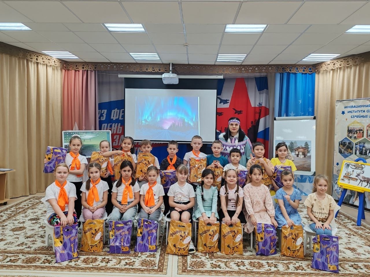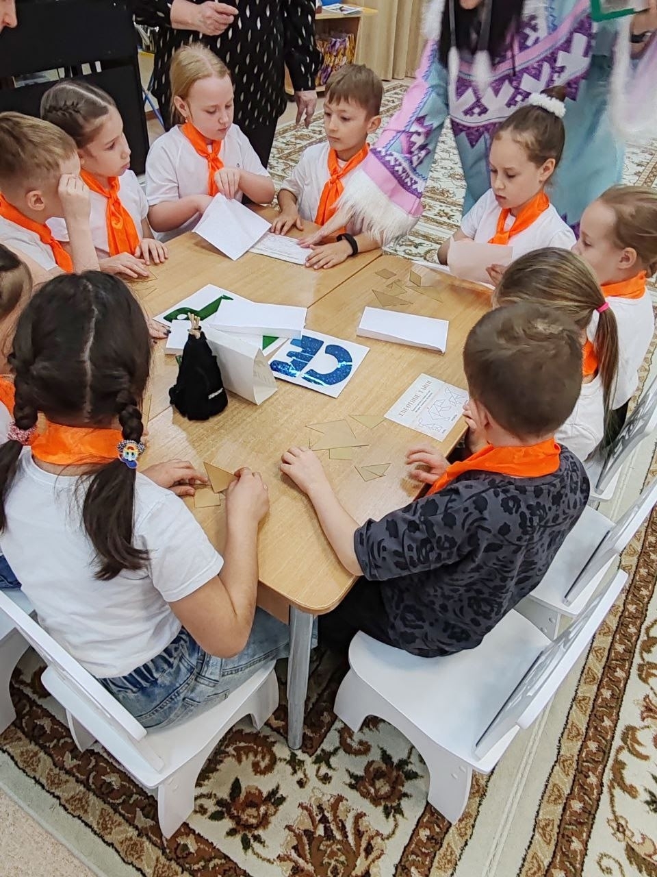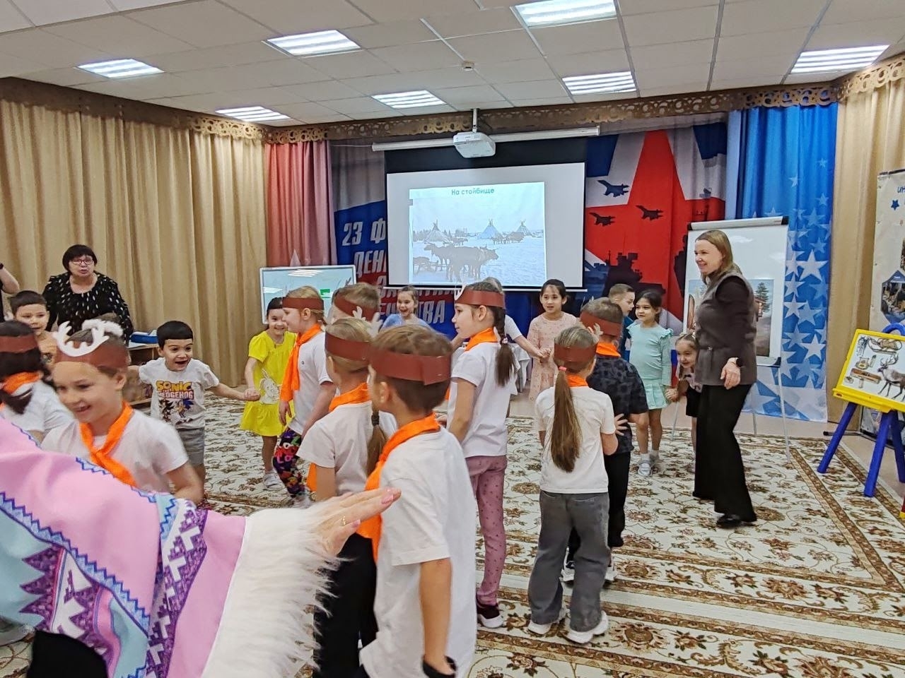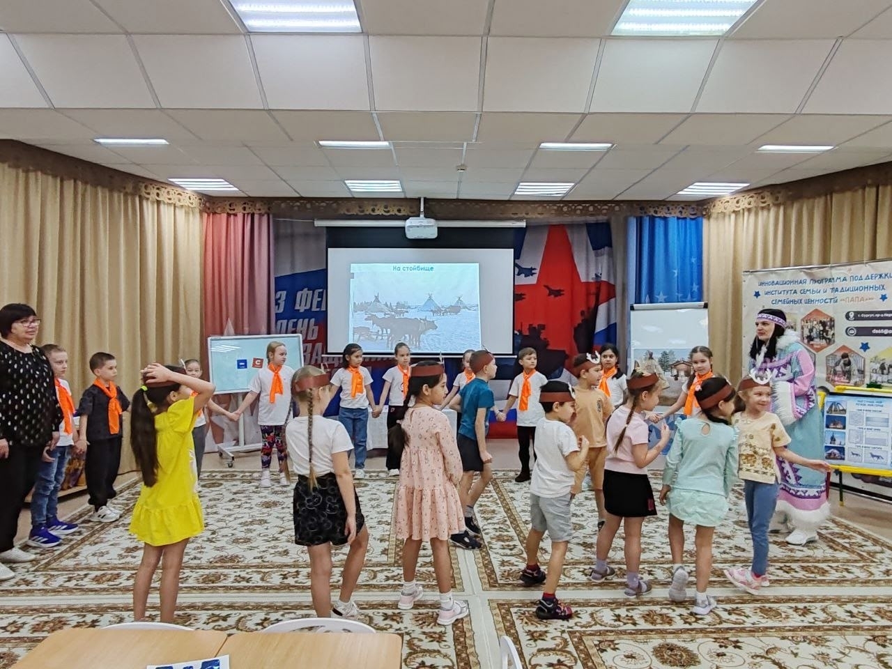 Игра состояла из множества интересных этапов, каждый из которых позволял детям проявить свои знания и умения. Участники соревновались в распознавании герба и флага Югры, отгадывали тематические загадки, собирали пазлы с изображениями животных нашего региона, выбирали национальную одежду народа ханты и даже дегустировали блюда традиционной кухни.