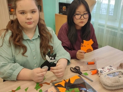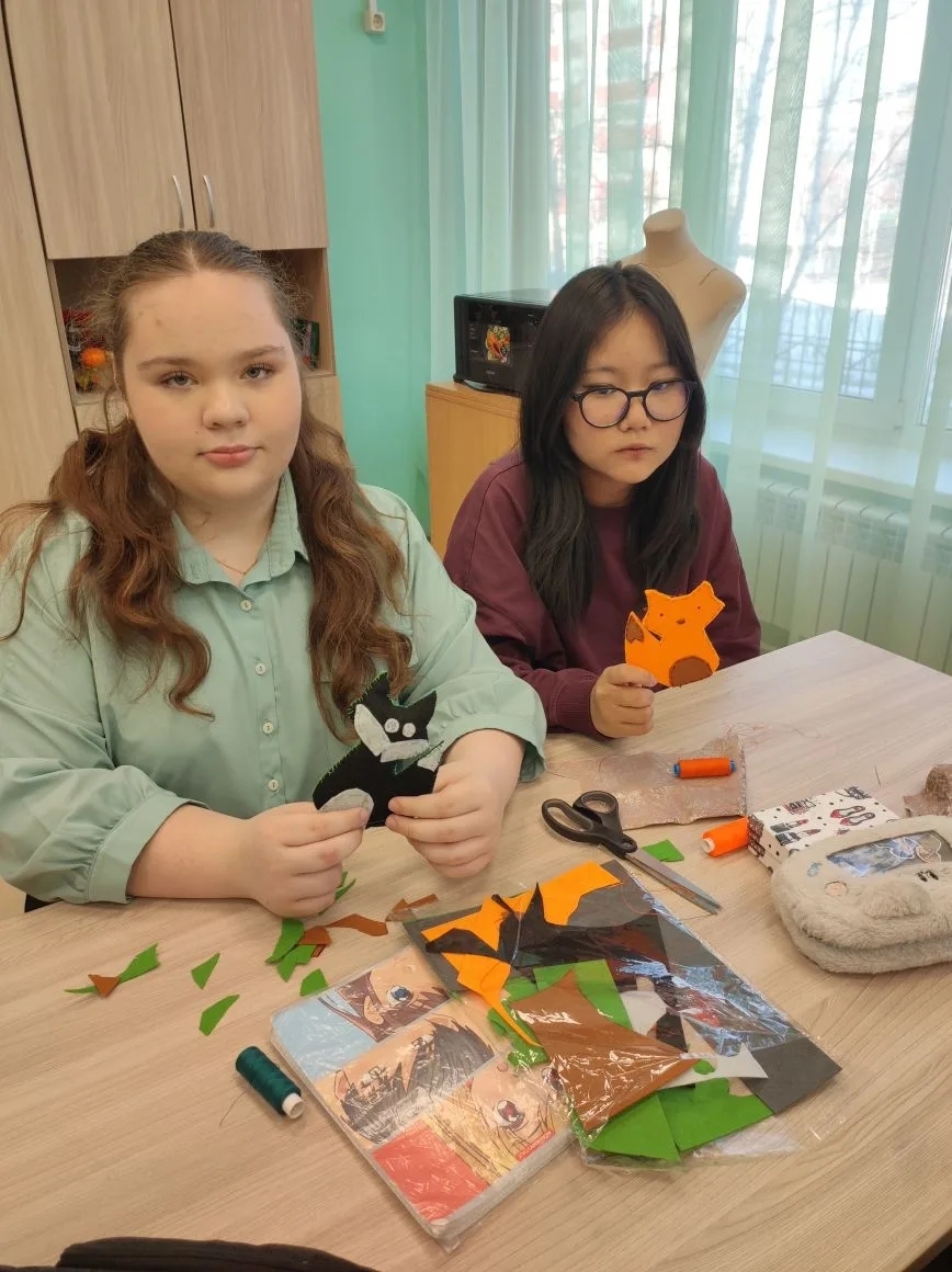 Девочки из 7-8 классов вместо привычных выкроек взяли в руки оранжевые и белые лоскутки фетра, иголки и нитки. Результат — целый выводок рыжих лисят!