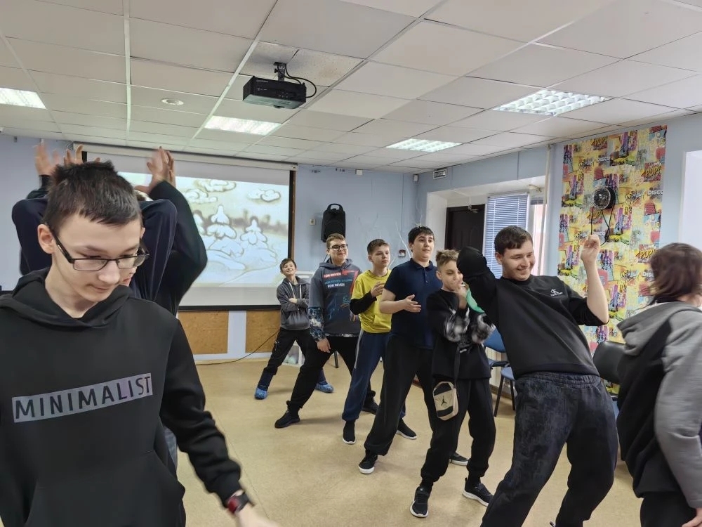 Финальным аккордом стал яркий танцевальный флешмоб: команды синхронно повторяли движения за персонажем на экране, демонстрируя отличную координацию и командный дух.