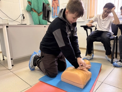 Финишем экскурсии стал настоящий тренинг по выживанию. Опытный анестезиолог-реаниматолог обучил ребят основам сердечно-легочной реанимации.